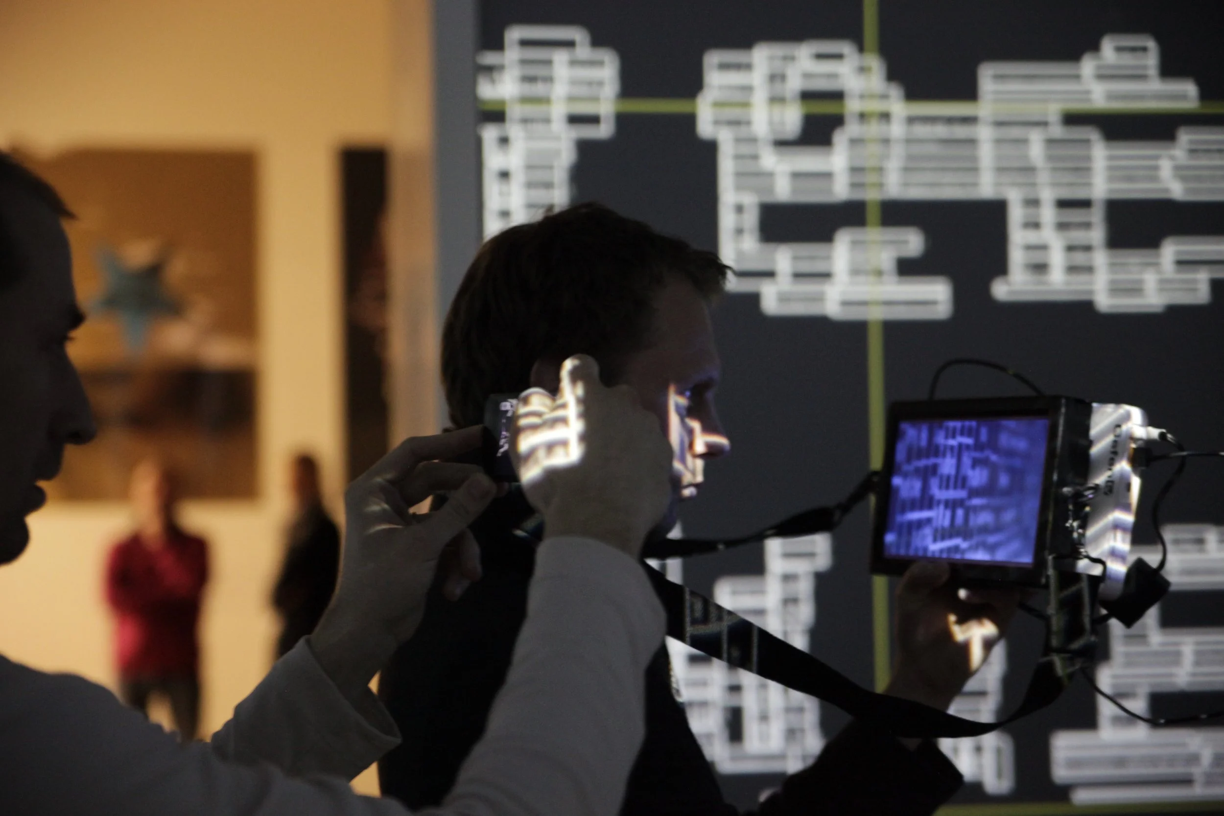 Dancers Valentina Scaglia and Lukas Timulak move through this world in a semi-improvised response. Their bodies reading the environment the way a body reads a room, adjusting to what the data makes visible and to what it buries. The choreography is not illustrative. It is a form of live attention: two nervous systems in dialogue with an information landscape that has no edges and no still point.
